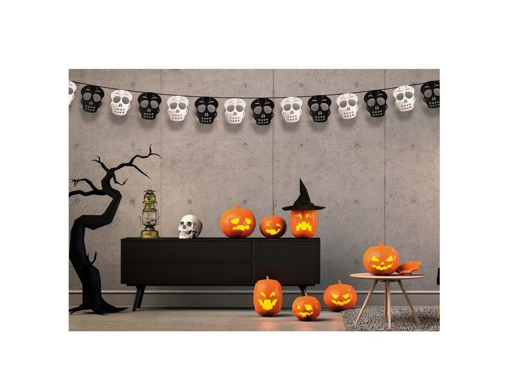 Na żadnej imprezie halloweenowej nie może zabraknąć ozdoby w postaci girlandy z czaszkami. Stwórz oryginalną halloweenową dekorację za pomocą naszych strasznych halloweenowych ozdób.