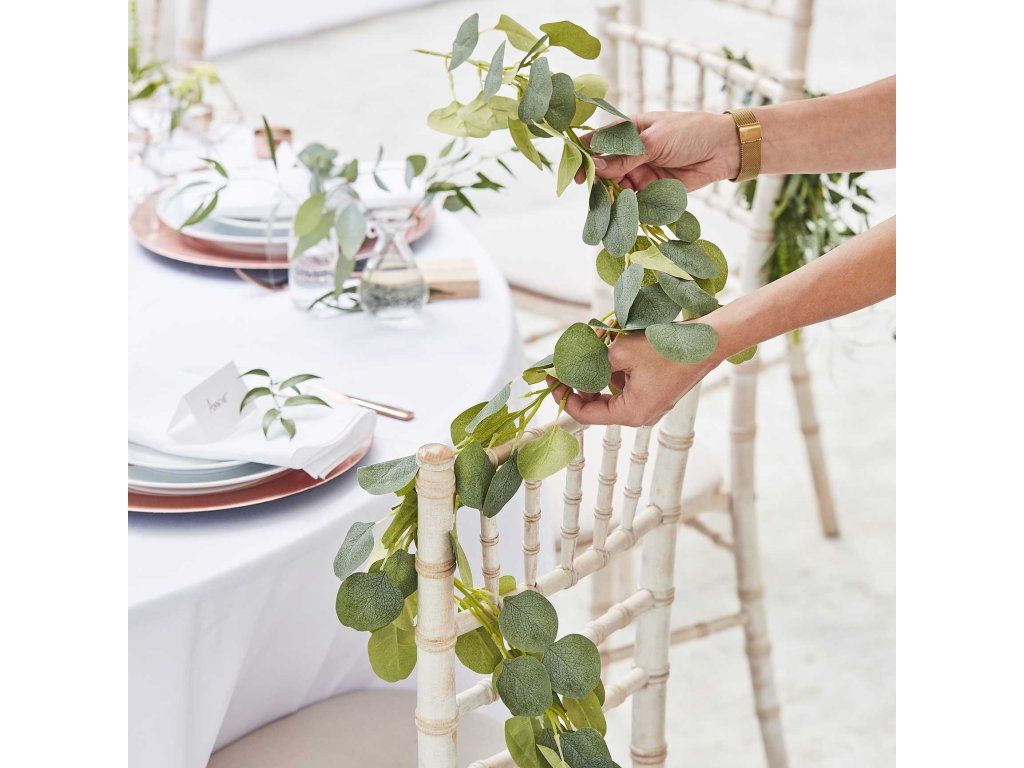 Udekoruj swoje przyjęcie tematyczne lub przyjęcie weselne tą girlandą ze sztucznego eukaliptusa. Wieniec z zielonego eukaliptusa jest idealnym dodatkiem do Twojego ślubu, tworząc naturalne i piękne otoczenie. Piękne ozdobne liście będą wspaniale wyglądać zawieszone wzdłuż okien, drzwi, a także mogą służyć jako dekoracja na stołach. Girlanda eukaliptusowa gustownie ozdobi egzotyczne letnie przyjęcie, a także przyjęcie weselne w ogrodzie.
