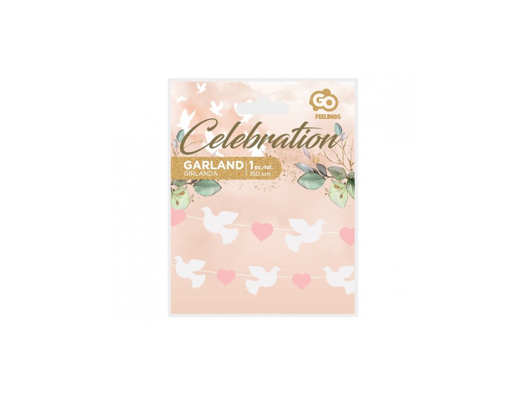 Girlanda - Gołębie i różowe serca 150 cm
