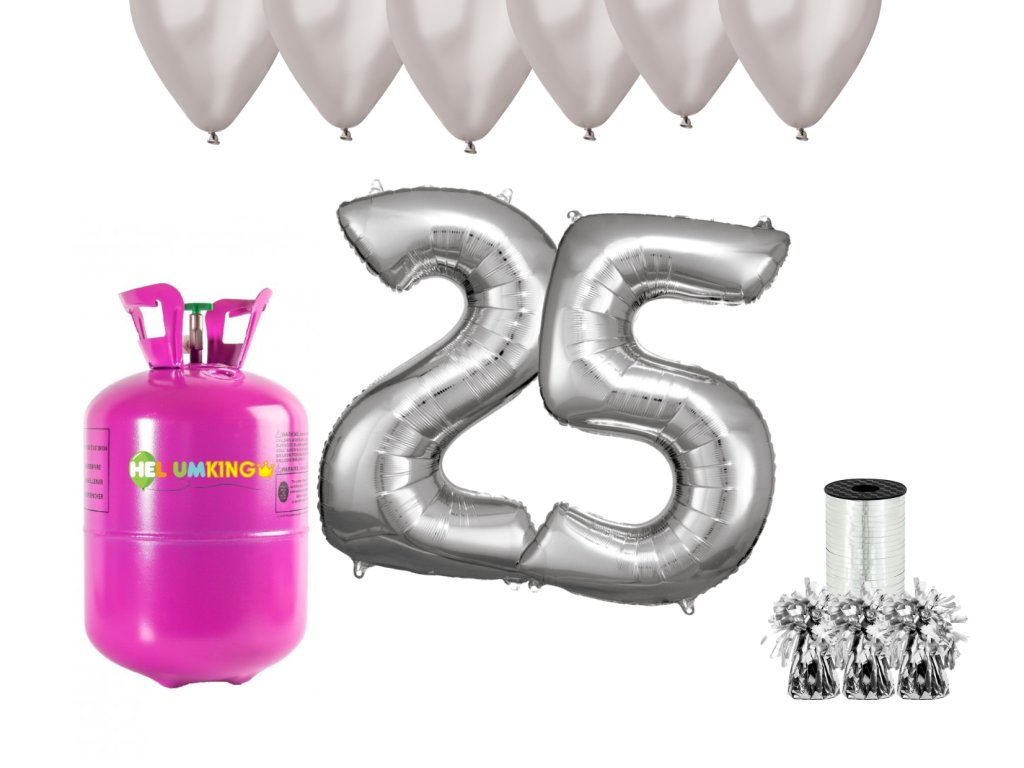 Co to za 25 urodziny bez efektownych dekoracji? Helowy zestaw imprezowy na 25 urodziny ze srebrnymi balonikami doda odpowiedniego soku do Twojej uroczystości. Wszystkiego najlepszego!