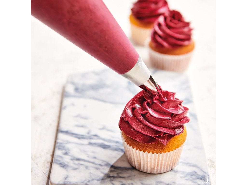 Zestaw dziesięciu rękawów cukierniczych przeznaczonych do dekorowania. Jednorazowe rękawy cukiernicze można napełnić kremem, bitą śmietaną czy pastami. Z ich pomocą i przy użyciu tylki cukierniczej stworzysz oryginalne słodkie i słone desery, które oczarują uczestników każdej imprezy. Rękawy są wykonane z wysokiej jakości antypoślizgowej folii. Doskonale sprawdzają się do zdobienia tortów, ciastek, koreczków, pierniczków, cupcakes i muffins.