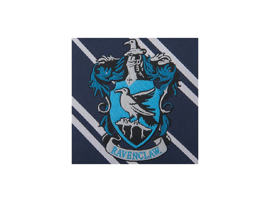 Elegancki krawat w kolorach domu Ravenclaw, jednego z czterech w czarodziejskiej szkole w Hogwardzie. Zdobi go herb słynącego z kreatywności domu Ravenclaw. Będzie doskonałym dodatkiem do garnituru miłośnika opowieści o Harrym Potterze.