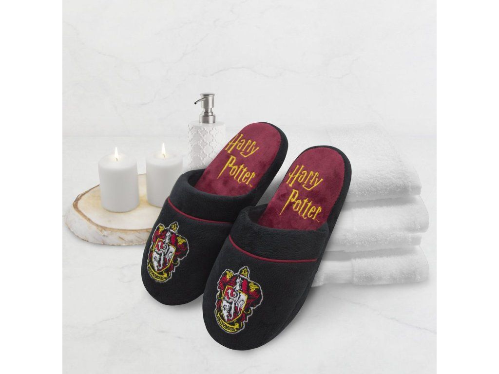 Spraw przyjemność sobie albo komuś bliskiemu tymi magicznymi kapciami, które oczarowują swoim projektem, symbolem Gryffindoru na wierzchu i logo Harry Potter na pięcie.