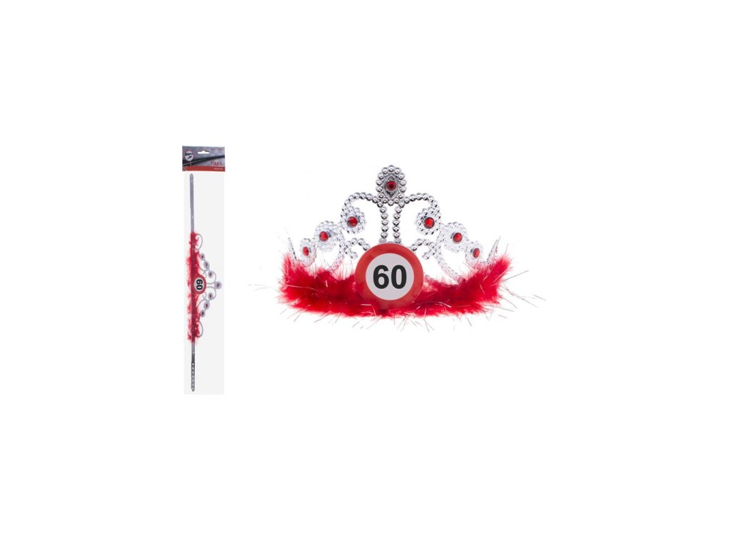 Korona na 60 urodziny z czerwonymi piórami