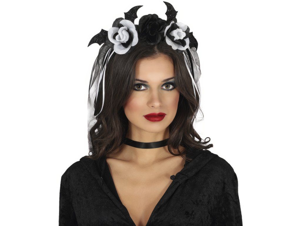 Twój karnawałowy czy halloweenowy kostium może być wiarygodniejszy dzięki różnym dodatkom jak na przykład ta korona z czarno-białymi kwiatami. Niech Twój kostium na imprezie czy karnawale nie zginie w tłumie.
