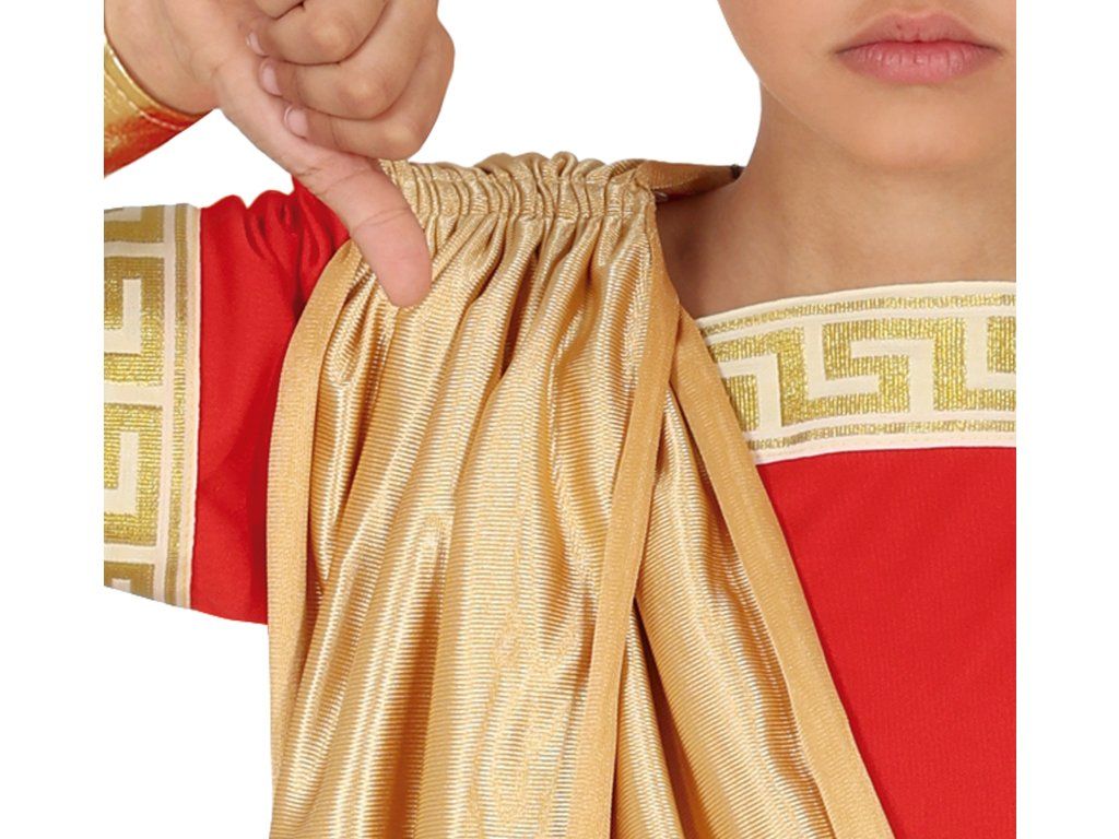 Kostium rzymski dla chłopców to idealny wybór dla małych poszukiwaczy przygód, którzy chcą przenieść się w czasie do starożytnego Rzymu. Kostium zawiera czerwoną sukienkę z typowymi rzymskimi elementami, takimi jak ozdobne złote wykończenia i detale przypominające styl wojskowy lub cesarski. Kostium nadaje się na karnawał, uroczystości tematyczne lub przedstawienia szkolne.
