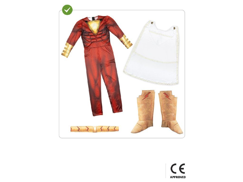 Przygotuj się na superbohaterską zabawę z naszym kostiumem Shazama! Ten niesamowity kostium da Ci siłę, o jakiej nawet nie śniłeś (przynajmniej na pierwszy rzut oka!). Przygotuj się na przygodę tak wielką, jak Twoja wyobraźnia!