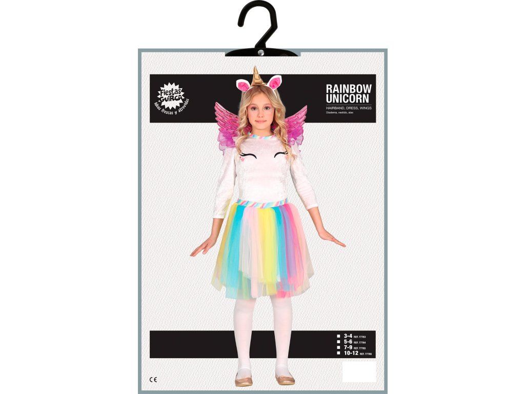 Twoje dziecko wybiera się na karnawał albo imprezę? Zaproponuj mu ten oryginalny kostium tęczowego jednorożca, w którym zostanie gwiazdą wieczoru. Jest odpowiedni na imprezę halloween, karnawał i inne okazje. Aranżacja zależy od okazji i Twojej wyobraźni.