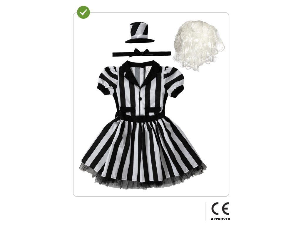 Przygotuj się na upiorną zabawę z naszym kostiumem Beetlejuice dla dziewczynek! Ten kostium jest tak niesamowity, że nawet sam Beetlejuice krzyknąłby jego imię trzy razy! W zestawie: