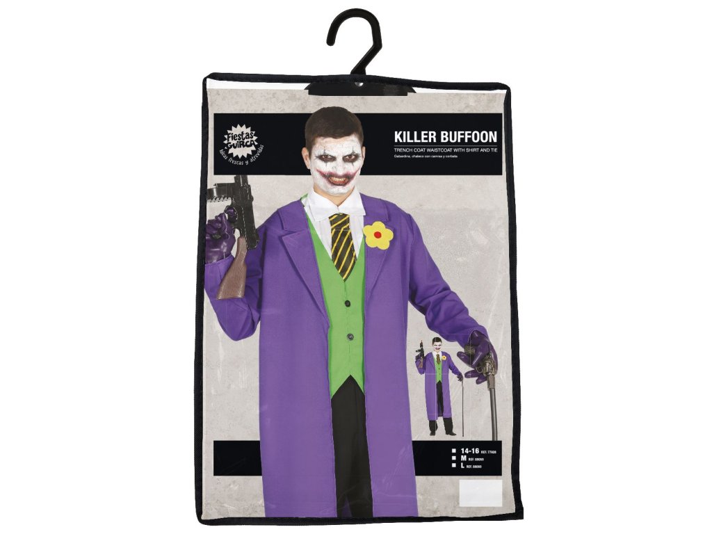 Szykujesz swoje dziecko na karnawał lub imprezę? Zaproponuj mu ten oryginalny kostium Jokera, w którym zostanie gwiazdą wieczoru. Jest idealny na imprezę Halloween, karnawał lub inne okazje. Aranżacja zależy od Waszej wyobraźni.