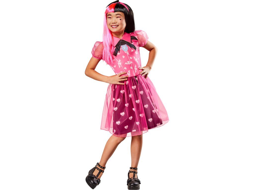 Przygotuj się na strasznie zabawną przemianę z dziewczęcym kostiumem Monster High - Draculaura! Ten kostium został zaprojektowany dla wszystkich małych wampirzyc, które kochają styl, przygodę i odrobinę upiornej elegancji – czy to na balu przebierańców, urodzinowej imprezie czy podczas zabawy w domu.