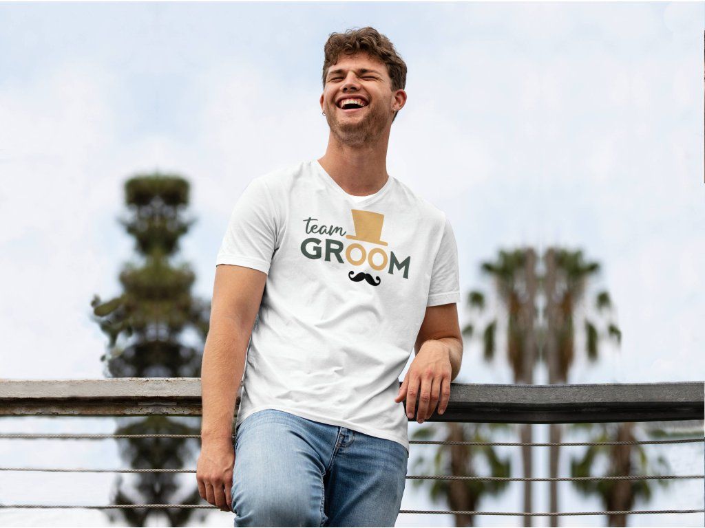Ubierz się na niezapomniany wieczór kawalerski w ekskluzywną koszulkę z nadrukiem "Team Groom". Jedyna w swoim rodzaju koszulka z dobrej jakości bawełny to nie tylko ubranie, ale wyraz radości i podniosłego nastroju przed nadchodzącym wielkim dniem.