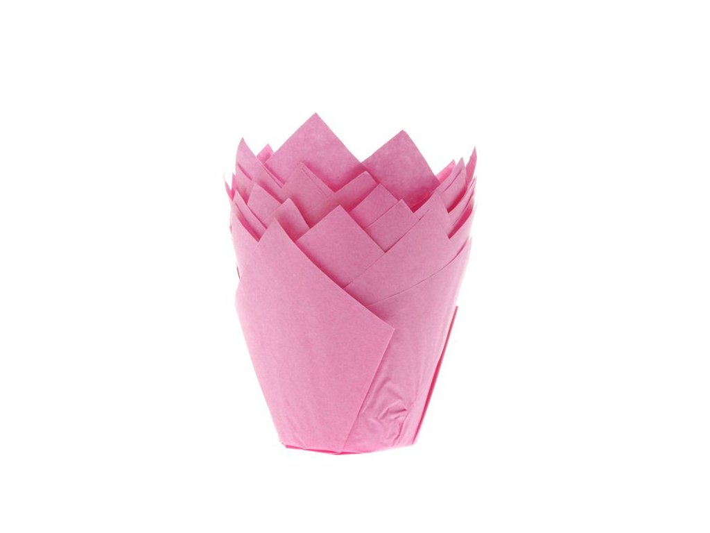 Papierowe koszyczki do wypieków przypominające kształtem tulipana. Ozdobne koszyczki do pieczenia muffinek są jednorazowego użytku. Aby uzyskać optymalne rezultaty, użyj formy na muffinki.