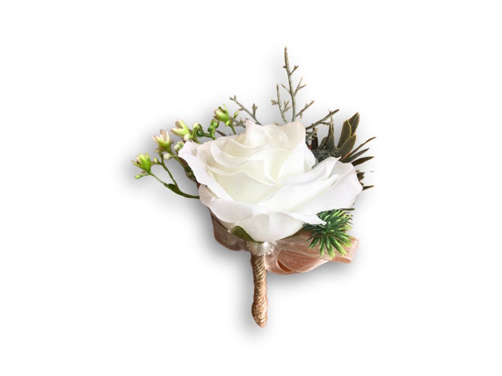 Kotylion, przypinka ślubna - romantic biały 1 szt.