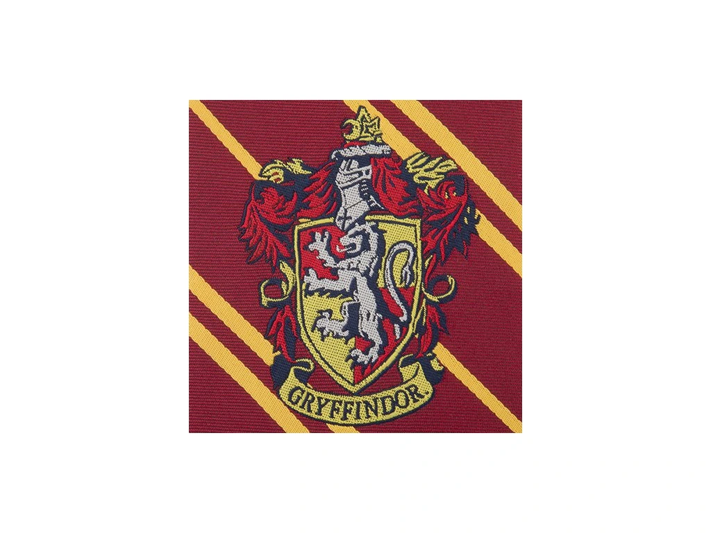 Elegancki krawat w kolorach domu Gryffindor, jednego z czterech w czarodziejskiej szkole w Hogwardzie. Zdobi go herb słynącego z uczciwości domu Gryffindor. Będzie doskonałym dodatkiem do garnituru miłośnika opowieści o Harrym Potterze.