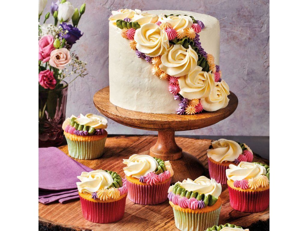 Łagodny krem masłowy doskonały do ozdabiania babeczek i cupcakes, a także jako nadzienie do tortu. Jest idealny do tortów niepowlekanych. Aby stworzyć oryginalne ozdoby z kremu, możesz posłużyć się rękawem cukierniczym i tylką.