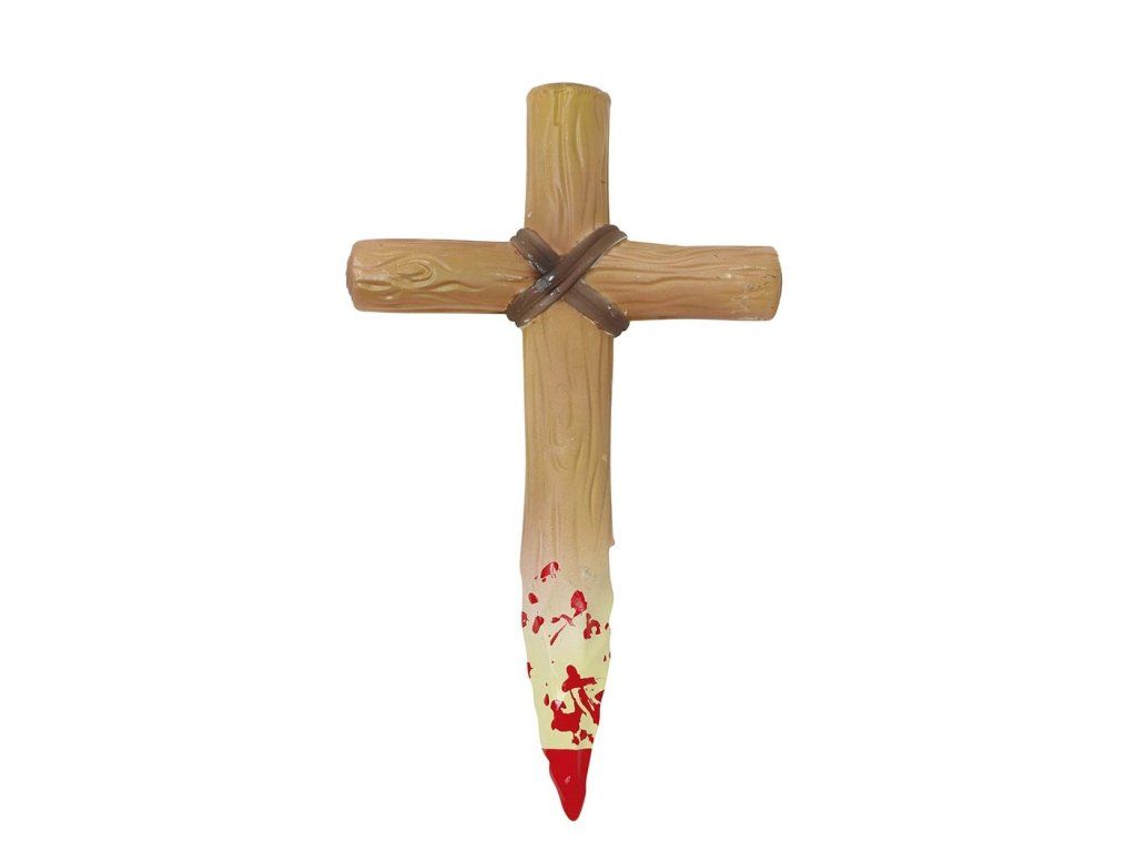 Twój karnawałowy czy halloweenowy kostium może być wiarygodniejszy dzięki różnym dodatkom jak na przykład ten krzyż - zaostrzony i zakrwawiony.