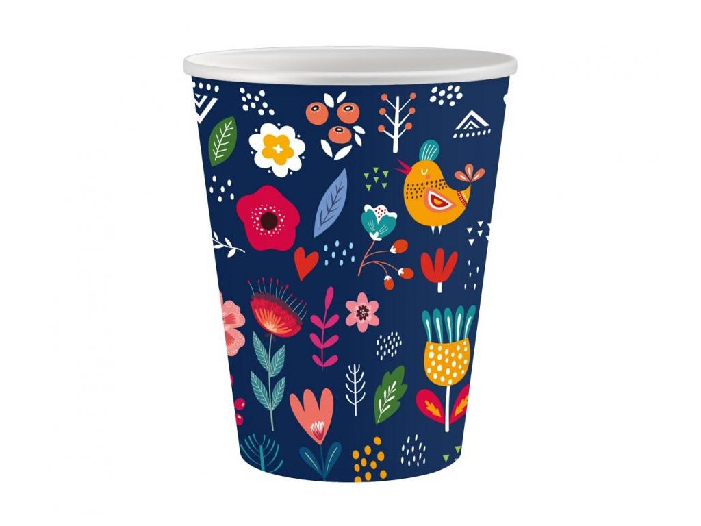 Kubki papierowe - ciemnoniebieskie, folk 6 szt.