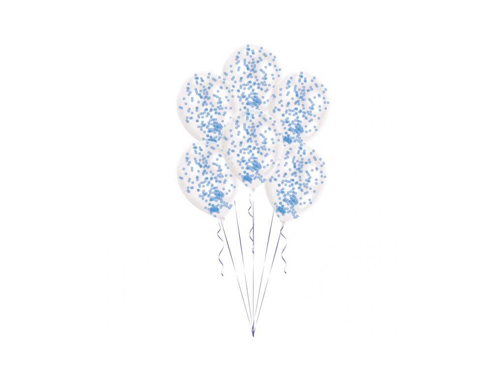 Lateksowe balony z konfetti - niebieskie 6 szt.