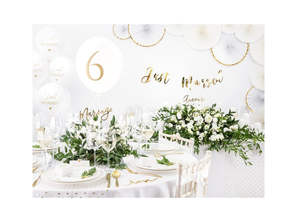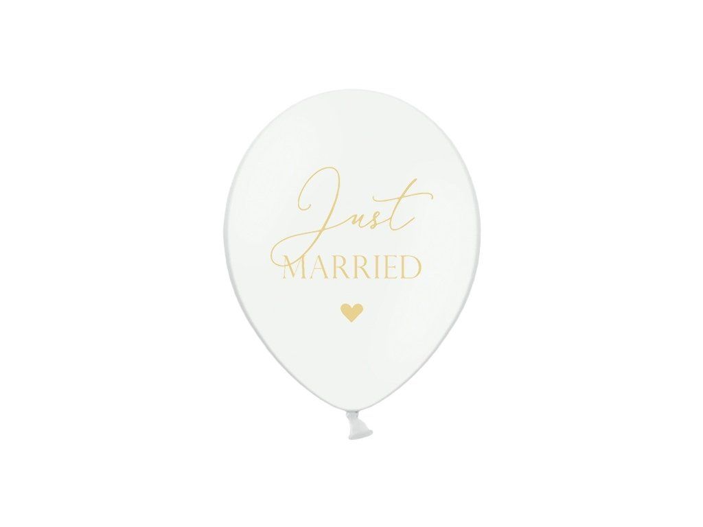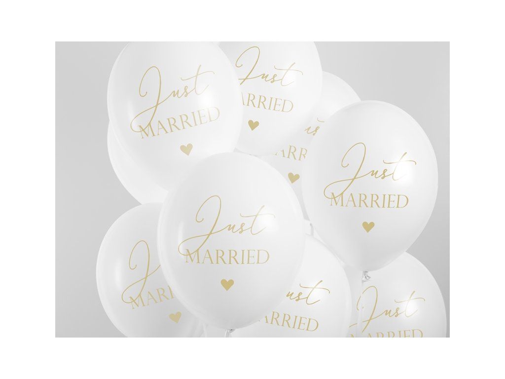 ?Lateksowy balonik w białym kolorze z weselnym nadrukiem idealny do ozdobienia imprezy weselnej. Balony imprezowe są wysokiej jakości i można nadmuchać je powietrzem lub helem.