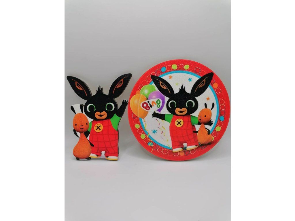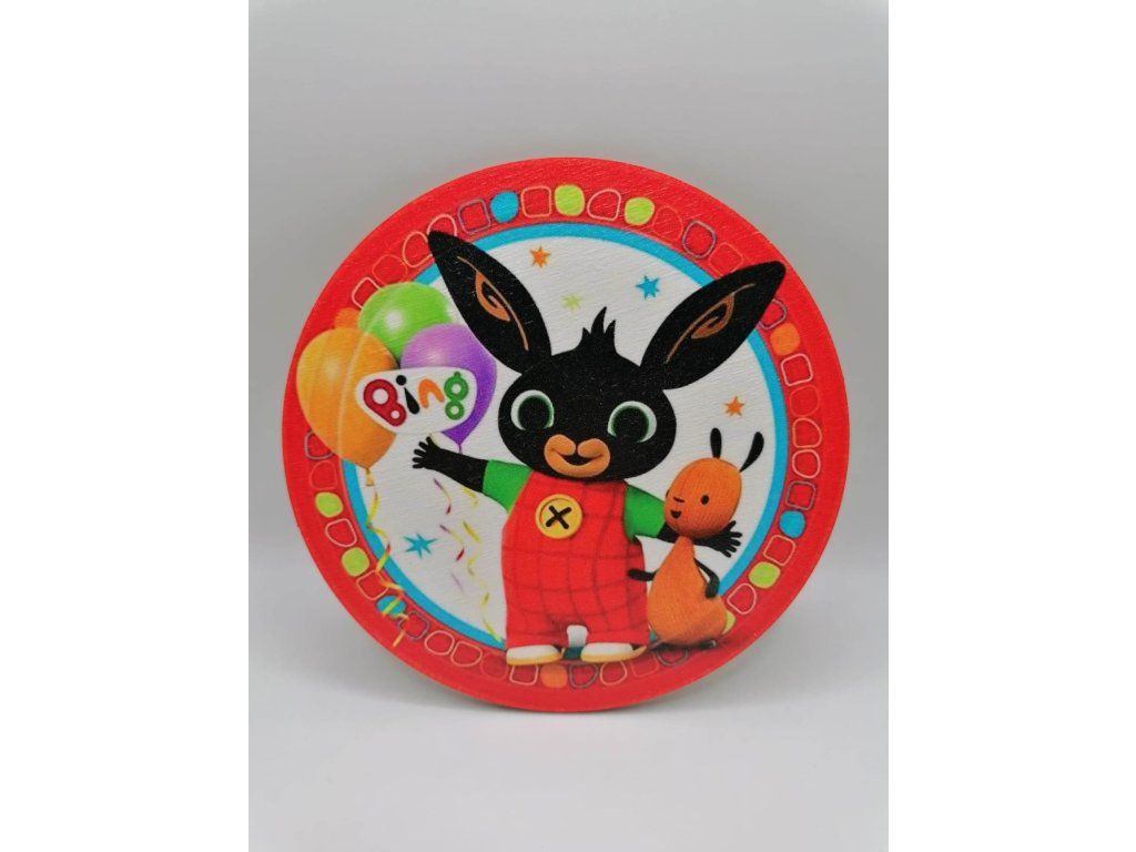 Oryginalny drewniany magnes z kolorowym nadrukiem króliczka Bing. Ucieszy każde dziecko jako drobna uwaga, nadaje się również jako prezent dla grupy dziecięcej lub jako nagroda w różnych konkursach. Magnes może również służyć jako ozdoba na wierzch tortu. Wystarczy przykleić szpikulec z tyłu magnesu. Po uroczystości magnes pozostaje dla dziecka na pamiątkę. Magnes nie jest przeznaczony do spożycia.