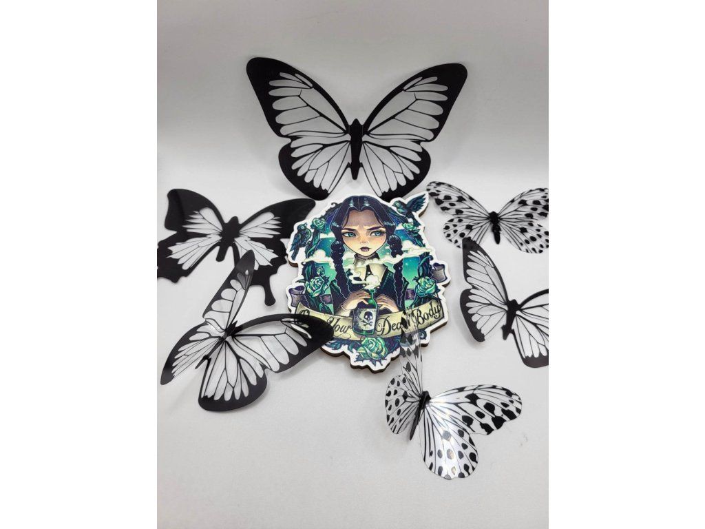 Przygotuj przyjęcie urodzinowe i nie zapomnij o torcie! Znana postać z filmu Wednesday Addams będzie idealnym dodatkiem do każdego ciasta, wystarczy wbić drewniany szpikulec z tyłu. Magnes nie jest przeznaczony do konsumpcji, ale jego przechowywanie będzie piękną pamiątką urodzinową i świąteczną. Proszę każdego fana - Wednesday Addams!