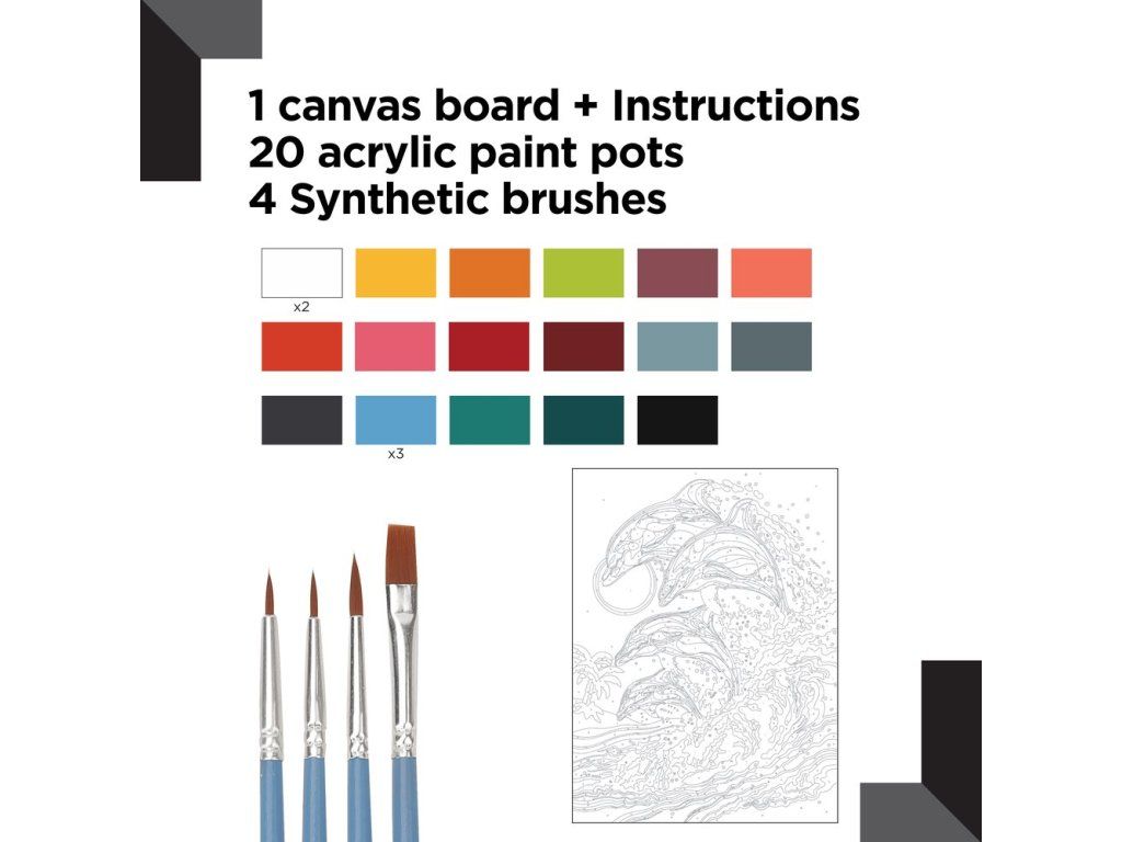 Odkryj podmorską magię z naszym radosnym zestawem do malowania po numerach – Delfíny 30x40 cm! Chwyć pędzel niczym artystyczny pirat, zanurz go w kolorach tęczy i pozwól, by numerki poprowadziły Cię przez ocean twórczości. W zestawie znajdziesz wszystko, czego potrzebujesz: pędzle (nie gryzą!), wysokiej jakości farby akrylowe (nie do jedzenia!) i wzór z numerkami (nie trzeba ściągać na matematyce!). Maluj krok po kroku, a wesołe delfiny wyskoczą na płótno szybciej niż zdążysz powiedzieć „klik!”. Malowanie po numerach to świetna zabawa dla dzieci, dorosłych i wszystkich, którzy lubią mieć kolorowy dzień. Gwarantujemy: uśmiech murowany, a nuda odpływa w siną dal!