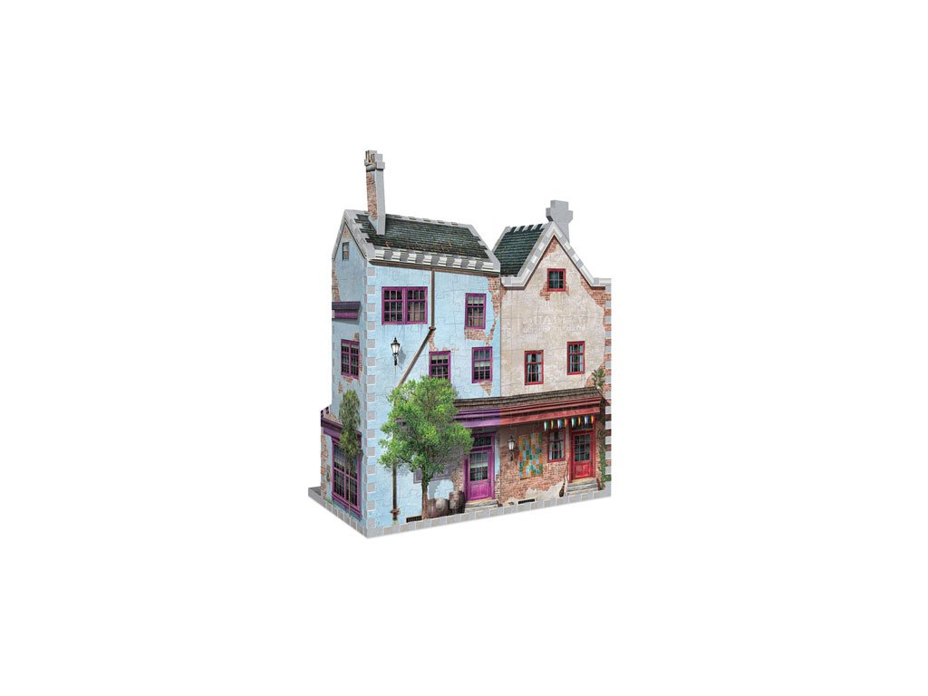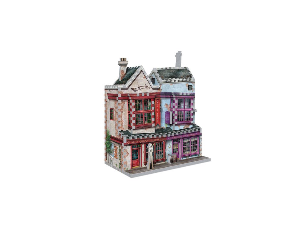 Puzzle 3D przedstawiające sklep z akcesoriami do gry w Quidditcha z opowieści o czarodzieju Harrym Potterze – świetna zabawa dla miłośników fantasy.