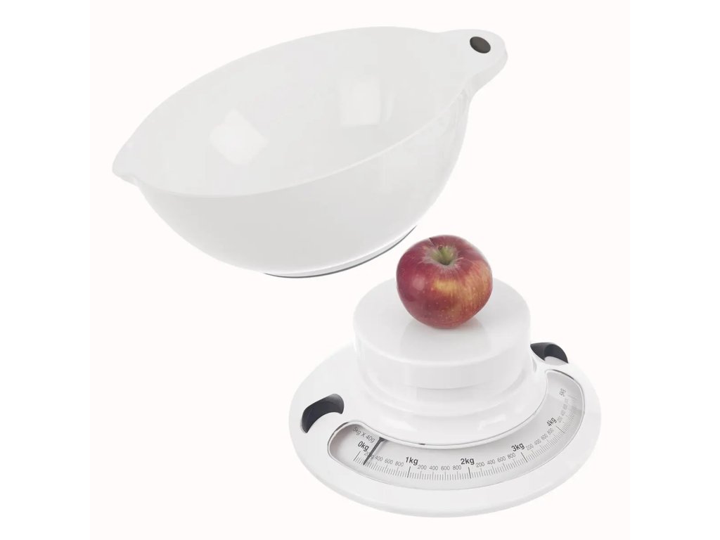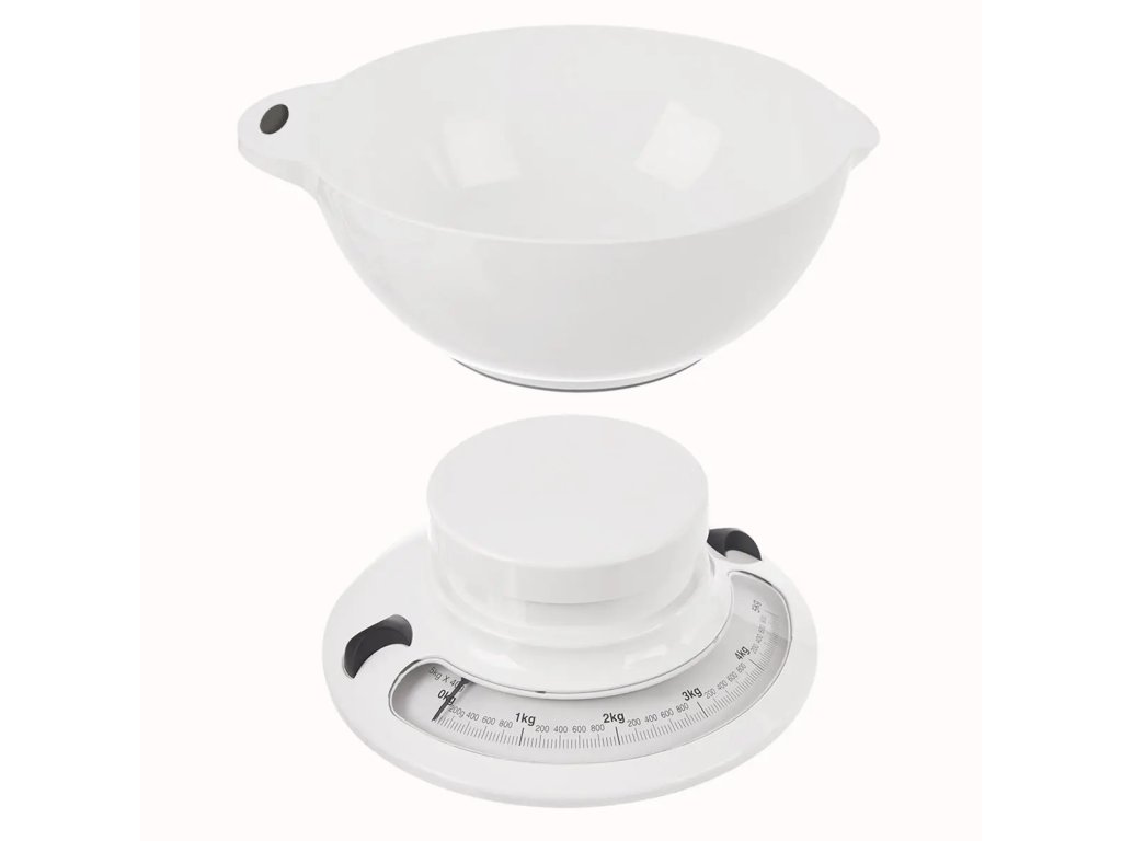 Praktyczna mechaniczna waga o maksymalnym obciążeniu do 5 kg to idealny pomocnik podczas pieczenia, gotowania oraz przygotowywania przetworów. Wyposażona jest w czytelną skalę (1 podziałka = 40 g) oraz możliwość tarowania poprzez proste obrócenie podstawy. Odłączana miska plastikowa z dzióbkiem (pojemność 2,7 l) posiada antypoślizgową gumę, podobnie jak sama waga, co zapewnia stabilność podczas użytkowania. Waga nie wymaga baterii i wykonana jest z trwałych materiałów.