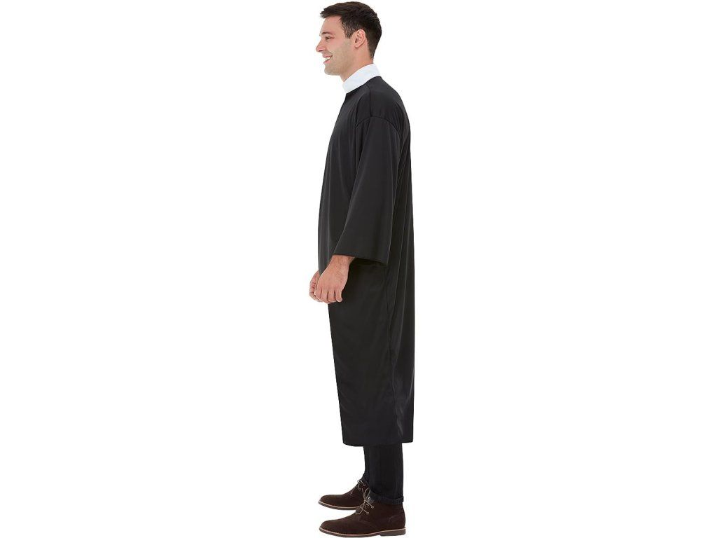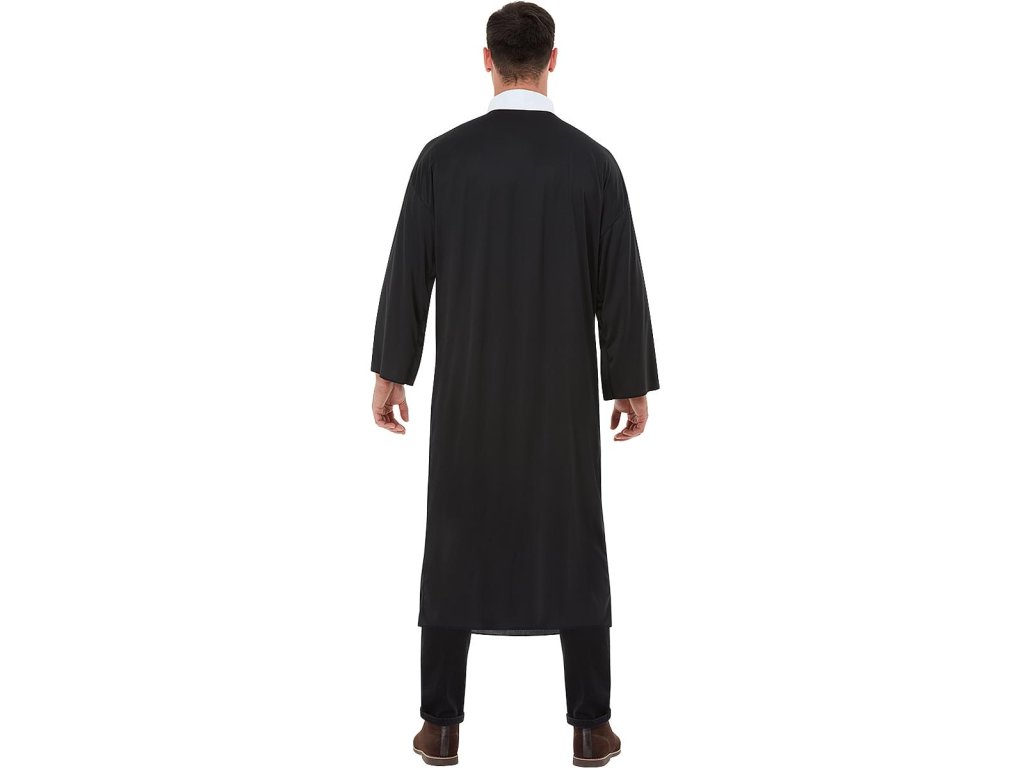 Kostium zawiera czarną sutannę z eleganckim białym kołnierzykiem, wykonaną z lekkiego, przewiewnego materiału dla maksymalnego komfortu nawet podczas najdłuższych mszy (lub imprez).