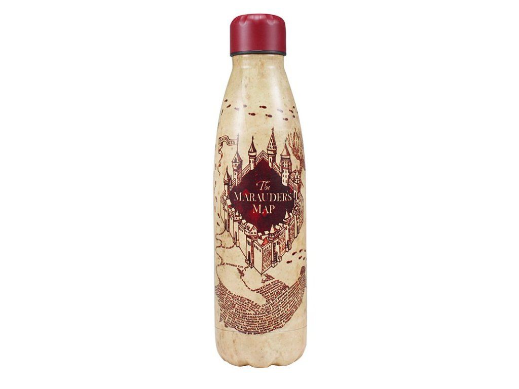 Ta metalowa butelka na wodę to idealny sposób na nawodnienie organizmu przy przygotowaniach do egzaminów z czarowania. Butelka jest ze stali nierdzewnej z efektownym logo Mapy Huncwotów.