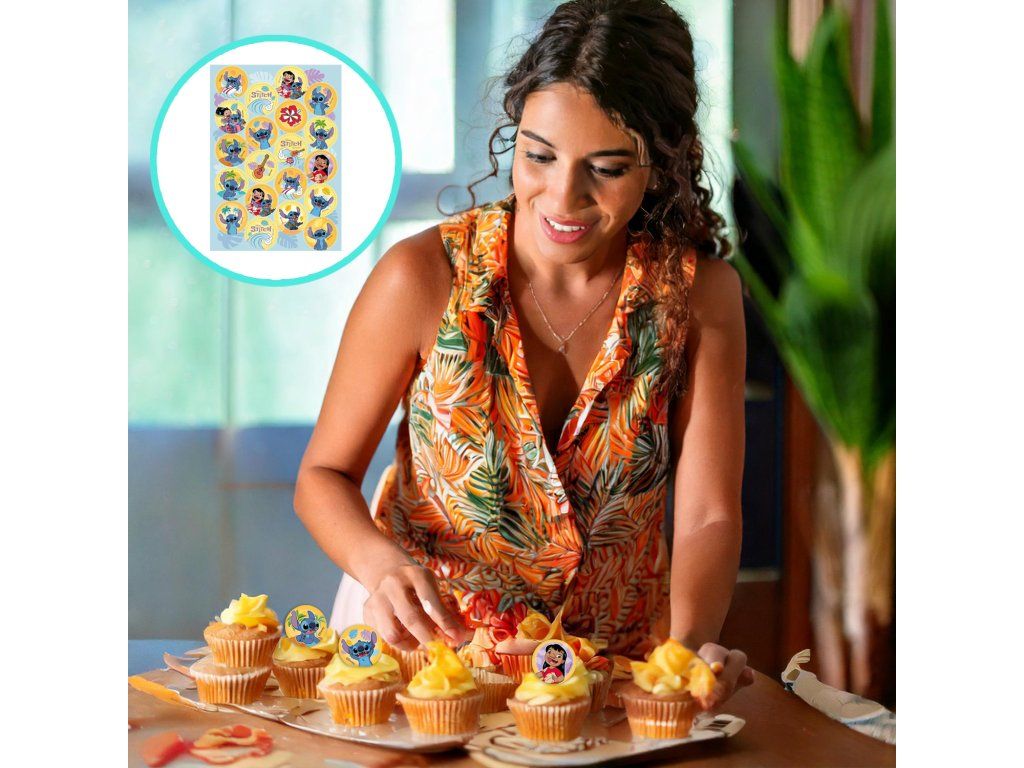 Podaruj swoim wypiekom zabawny i bajkowy wygląd dzięki jadalnym ozdobom z Stitchem! Te małe obrazki o średnicy 3,4 cm są idealne do babeczek, muffinów czy ciasteczek. Są łatwe w aplikacji i natychmiast dodadzą deserom magicznej dekoracji.