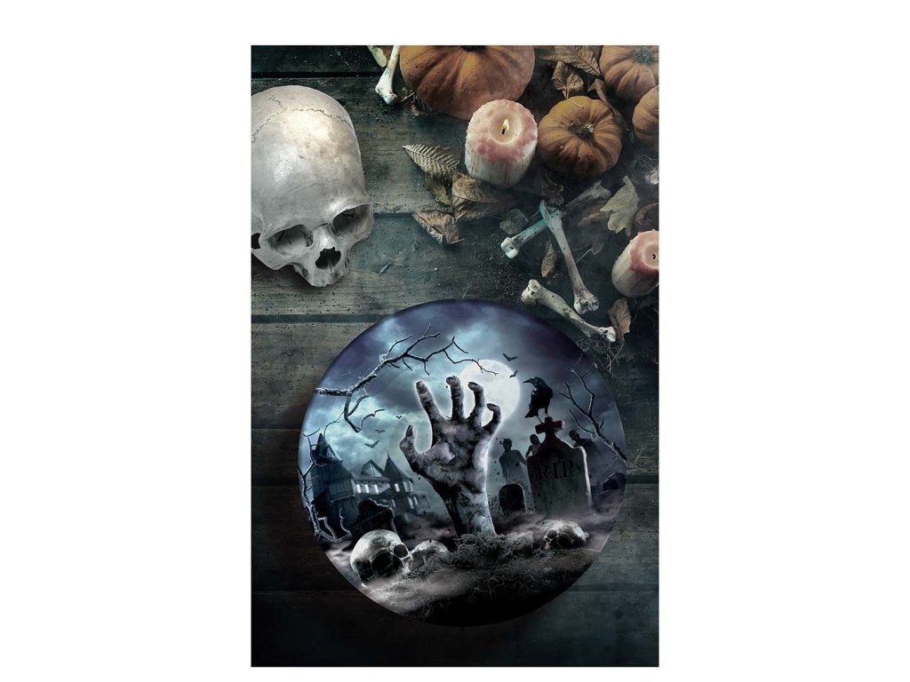 Ożyw imprezę halloween gadżetami jak ta straszna miska z motywem Cmentarz na słodkie poczęstunki i różne przysmaki.