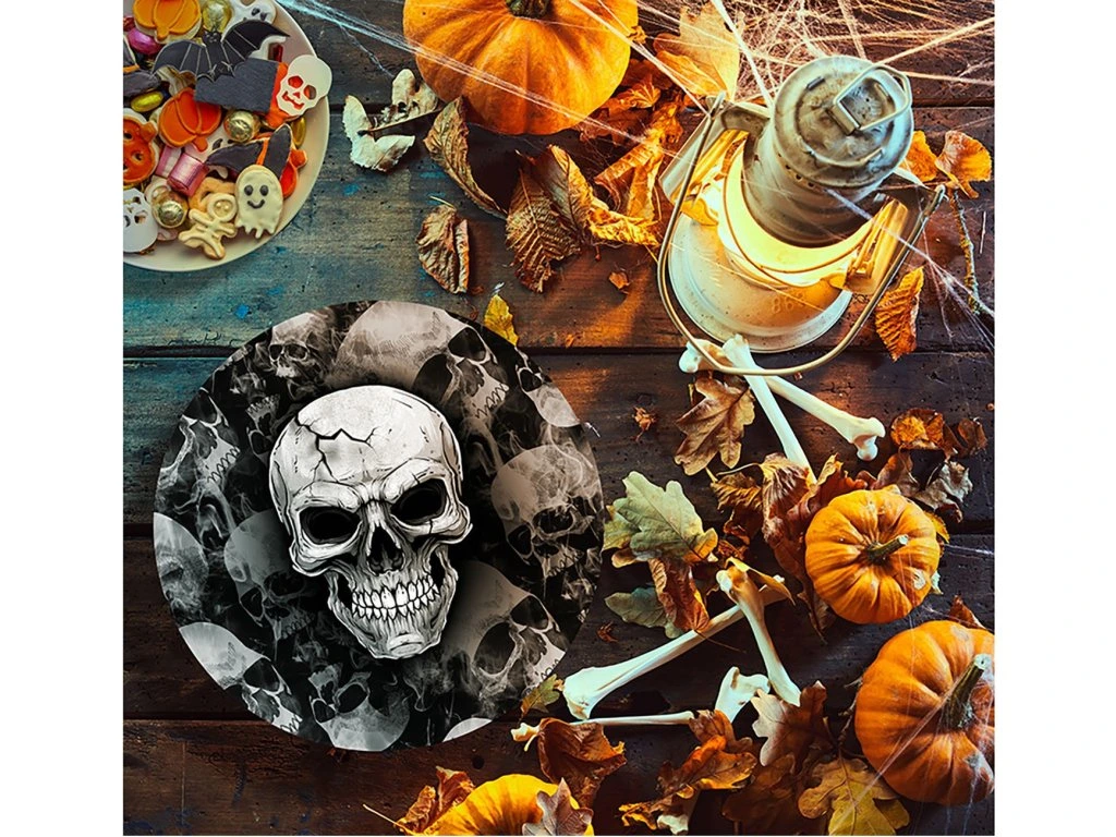 Ożyw imprezę halloweenową dołączając do dekoracji tą straszną misę z motywem czaszki na słodkości czy inne przekąski. Nakrycie stołu na imprezie jest nie tylko nieodłącznym elementem praktycznym, ale także stanowi ważny element całego wystroju i imprezowej dekoracji.