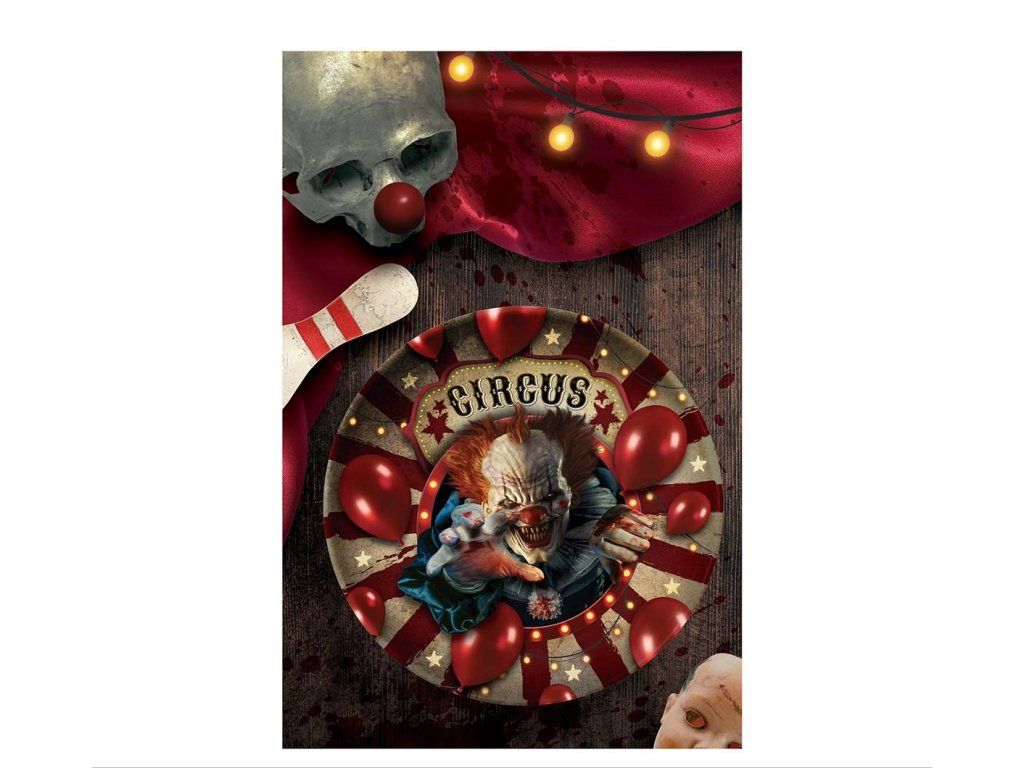 Ożyw imprezę halloween gadżetami jak ta straszna miska z motywem Klaun Cirkus na słodkie poczęstunki i różne przysmaki.