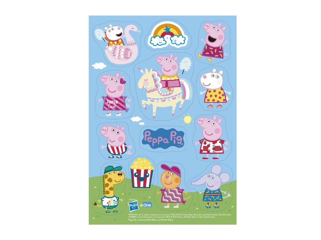 Udekoruj wypieki, cupcakes czy inne desery za pomocą jadalnych obrazków z motywem Świnki Peppy. Obrazki są wykonane z jadalnego papieru opłatkowego. Doskonale uzupełniają torty o tematyce dziecięcej. Nie zawierają glutenu, cukru ani laktozy, są odpowiednie dla wegan i wegetarian.