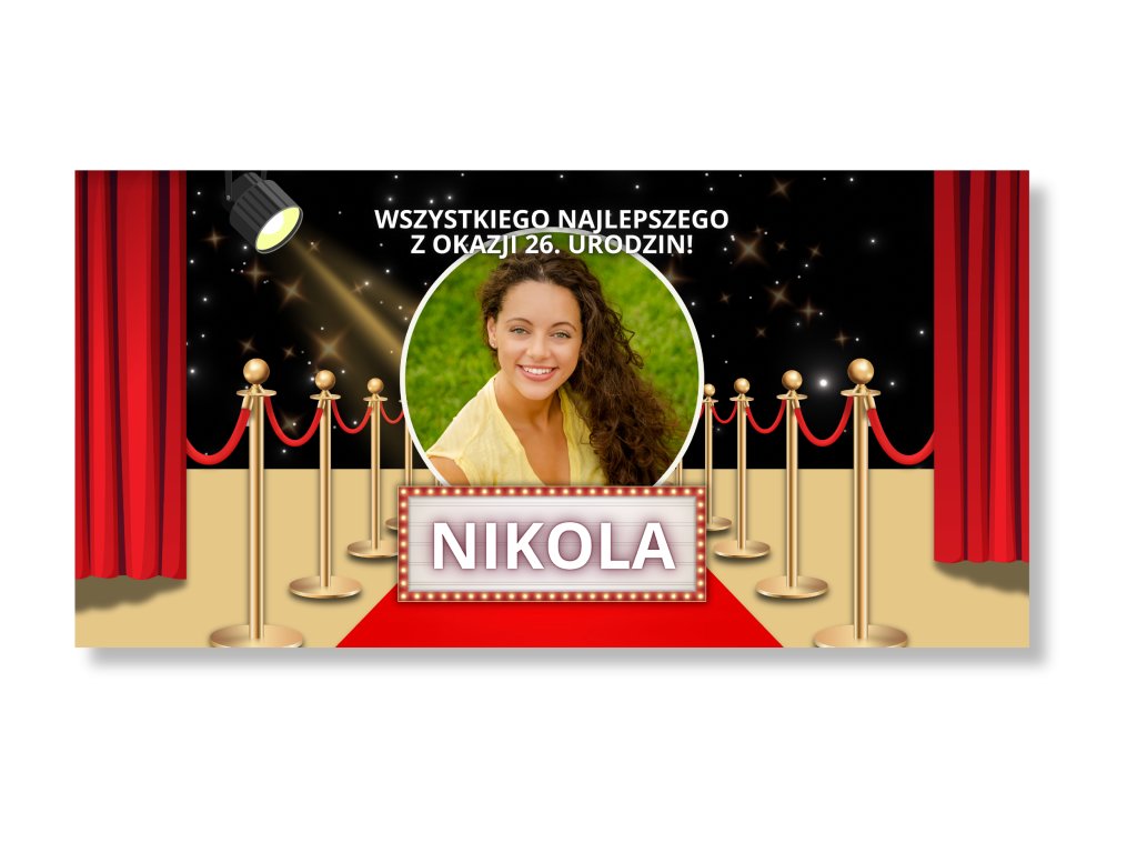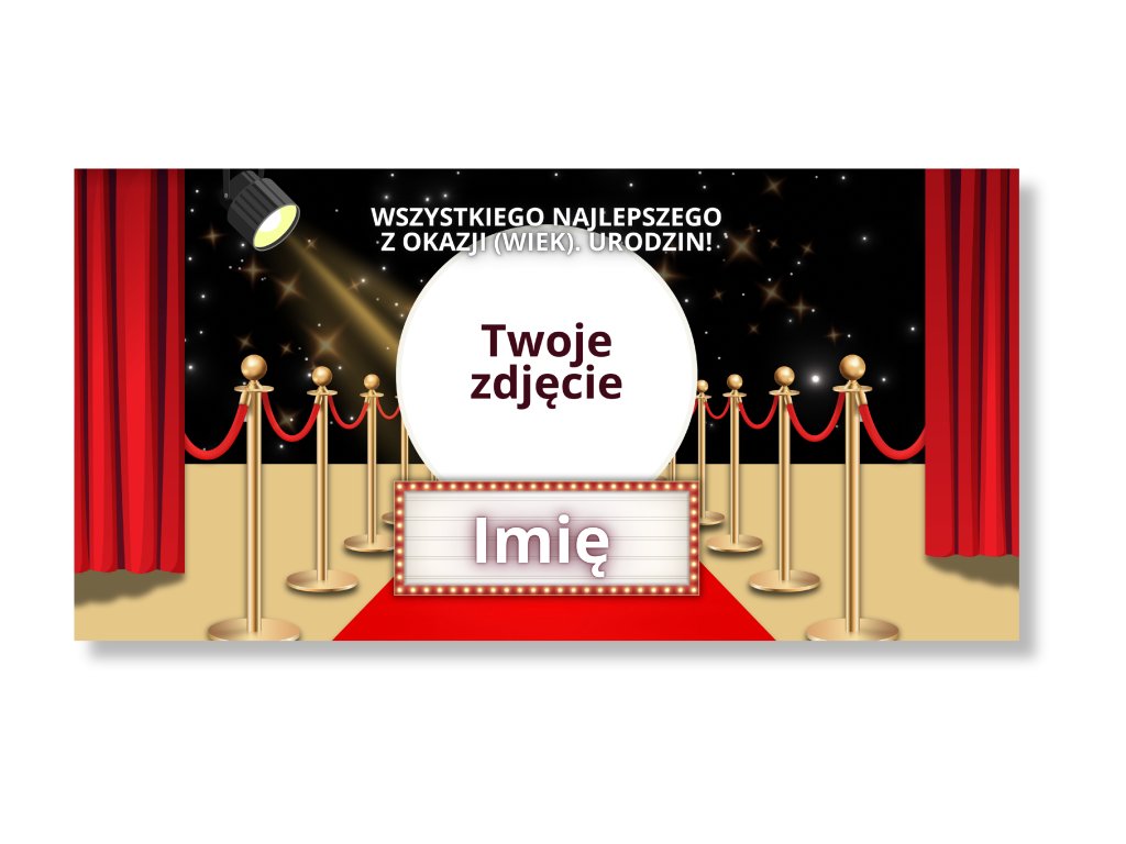 Baner w stylu Hollywood doda urodzinowej imprezie szyku, blasku i wyjątkowej atmosfery jak z czerwonego dywanu! Wystarczy dodać zdjęcie solenizanta, imię i wiek – i gwiazdorska zabawa może się rozpocząć. Ten personalizowany baner ucieszy każdego, kto zasługuje na urodziny jak prawdziwa gwiazda filmowa.