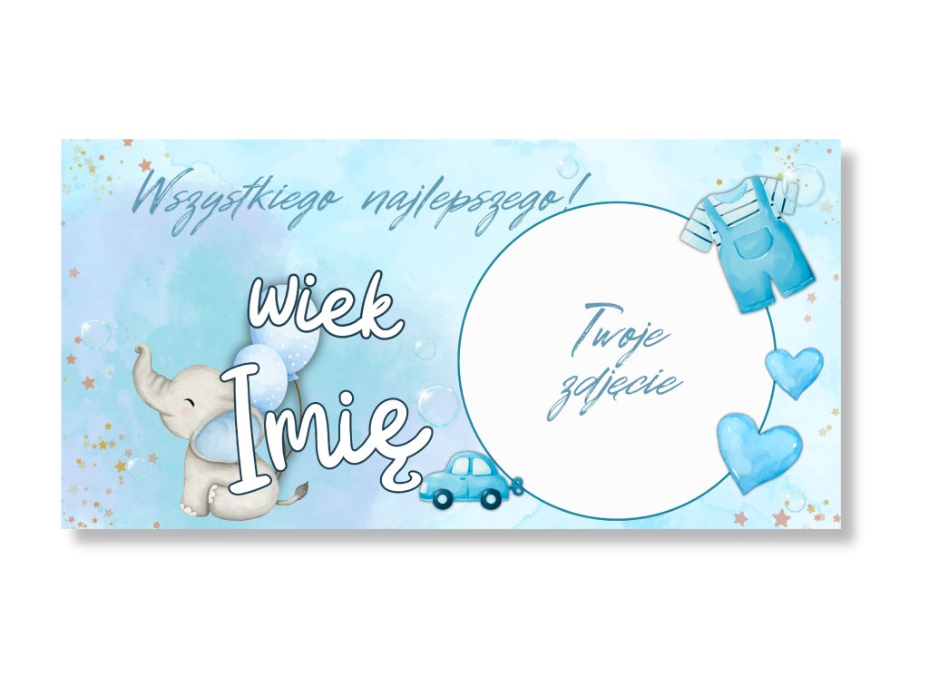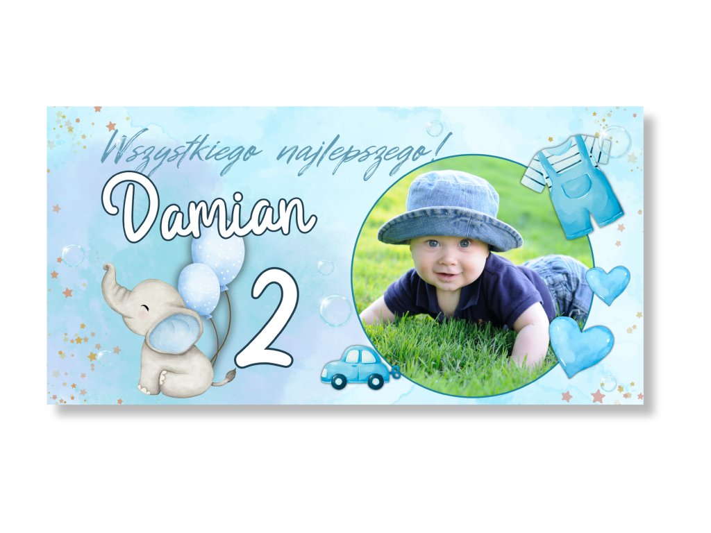 Urodzinowy baner ze zdjęciem – jasnoniebieski