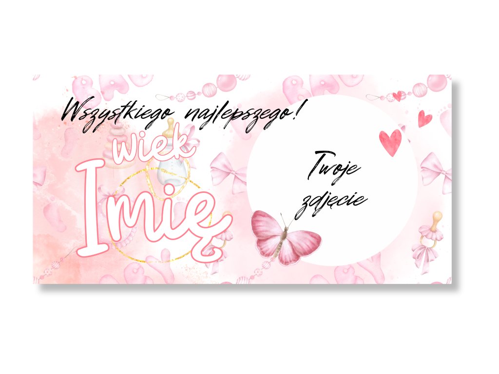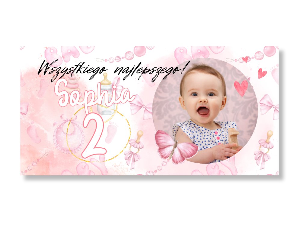 Baner urodzinowy ze zdjęciem – Jasny róż
