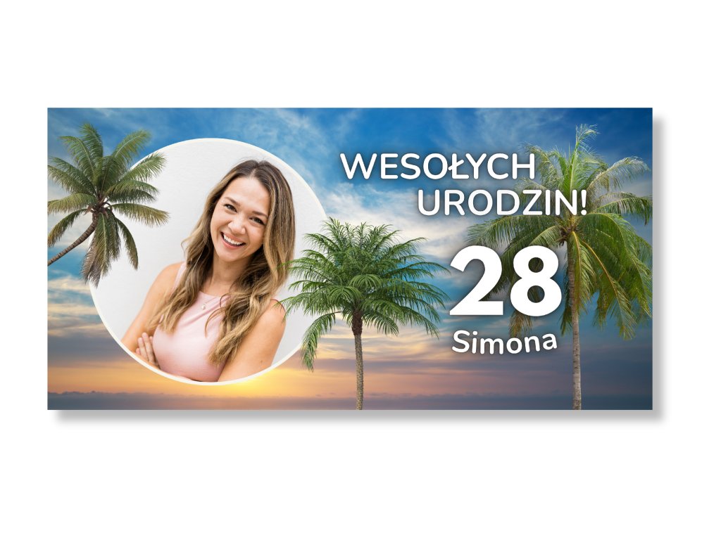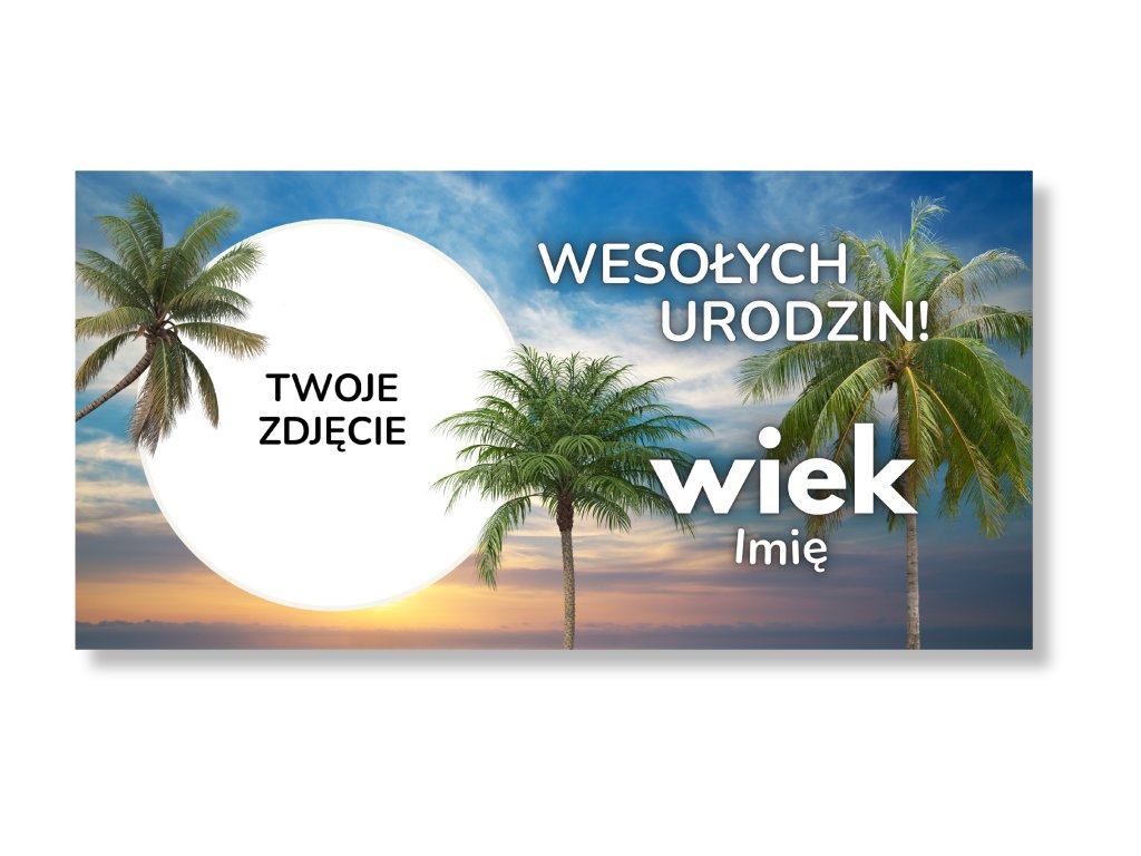 Baner urodzinowy ze zdjęciem – Morze i palmy