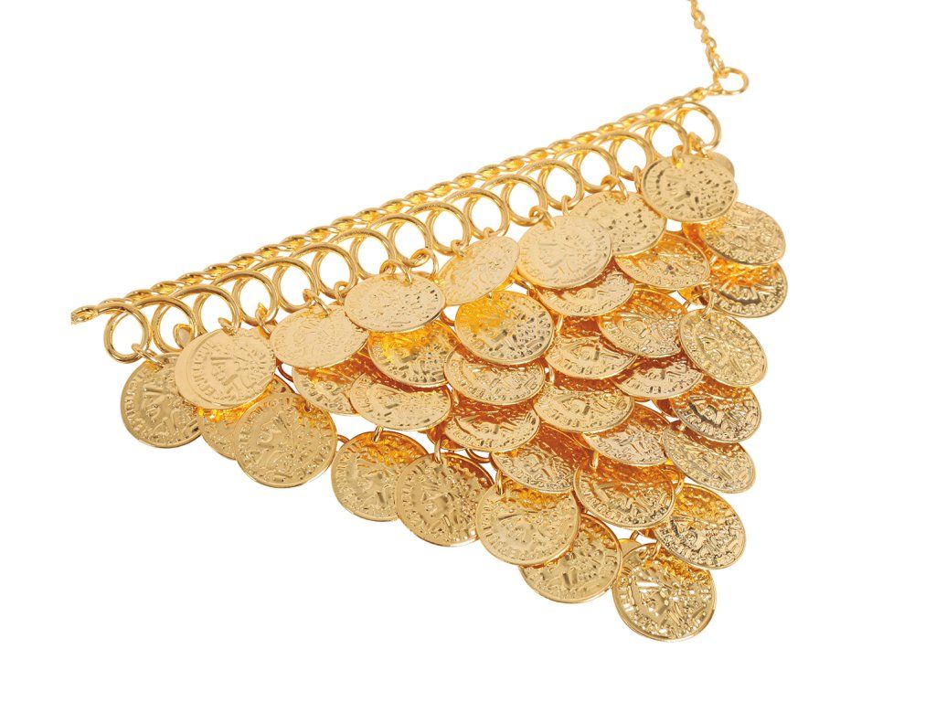 Twój karnawałowy czy halloweenowy kostium będzie wyglądać bardziej wiarygodnie dzięki takim dodatkom jak naszyjnik wykonany z monet. To dodatek, który pasuje do różnych kostiumów karnawałowych w klimacie cygańskim – ogranicza Cię tylko Twoja wyobraźnia.