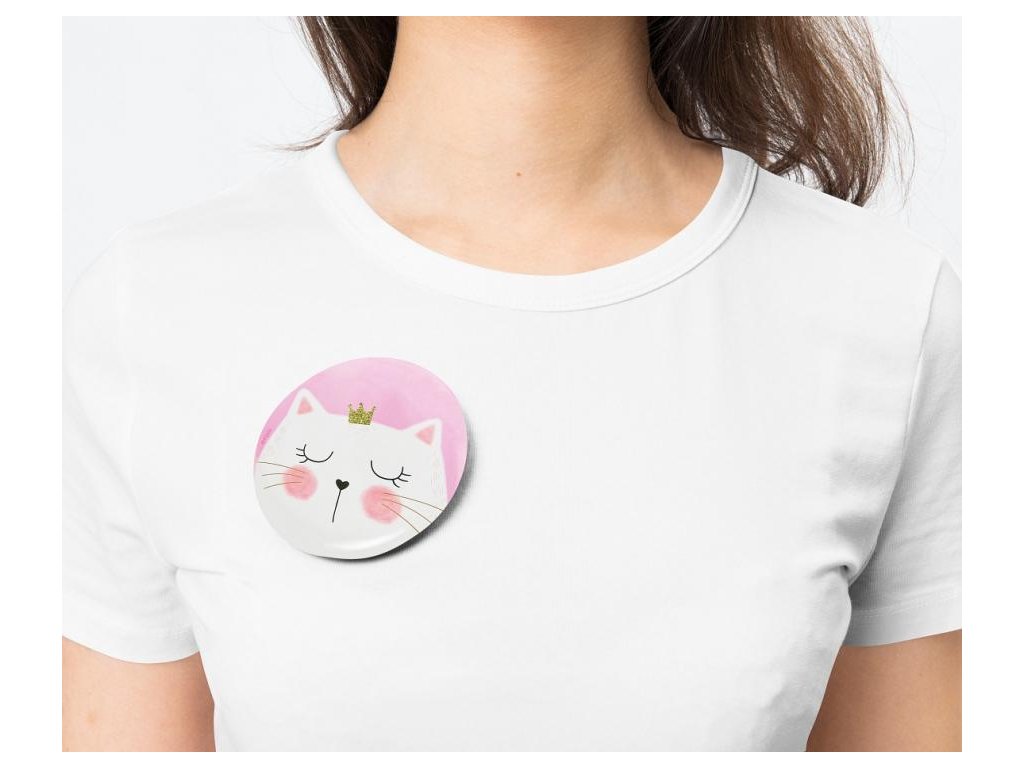 Ta piękna odznaka z motywem kota ucieszy każdego miłośnika mruczków. Doskonale ozdobi Twoje codzienne ubranie, torbę albo portfel.
