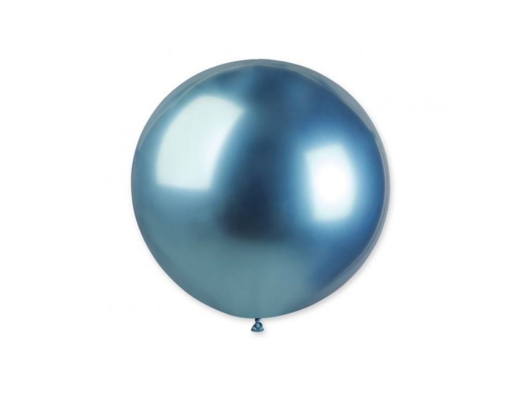 Okrągły chromowany balon SHINY niebieski 80 cm
