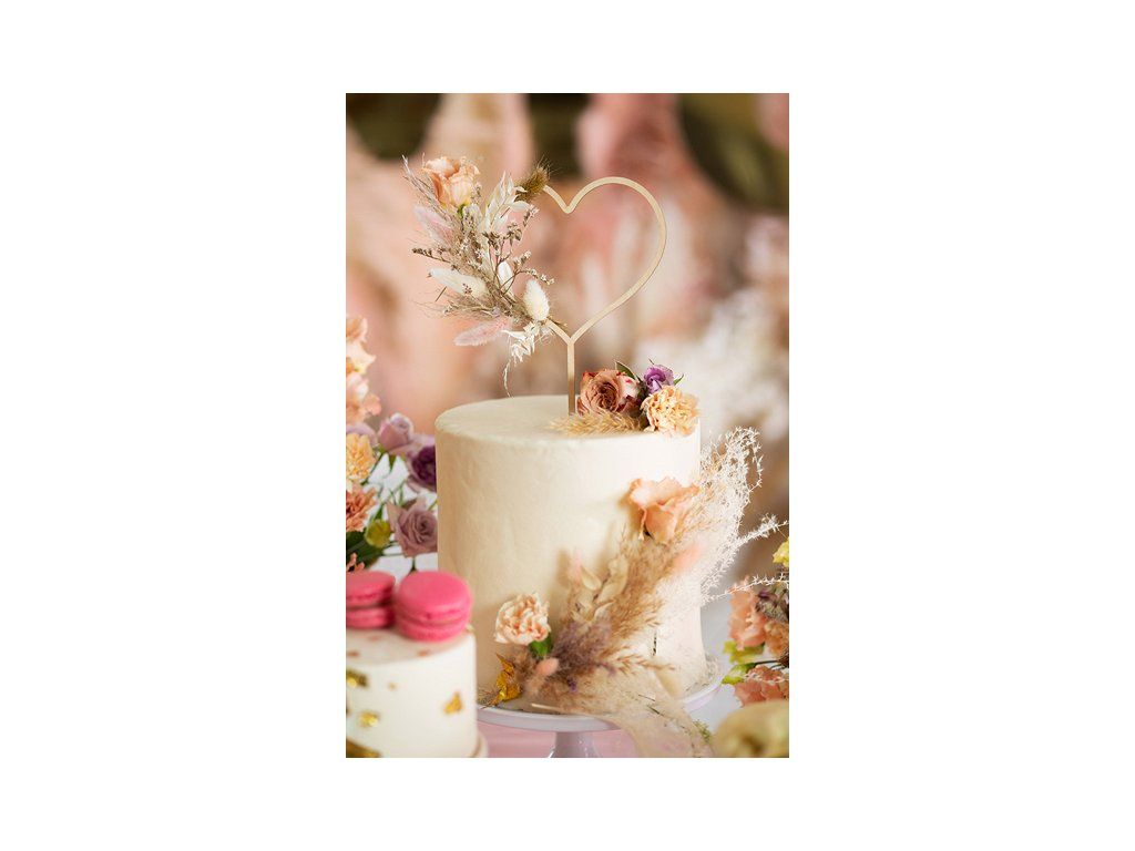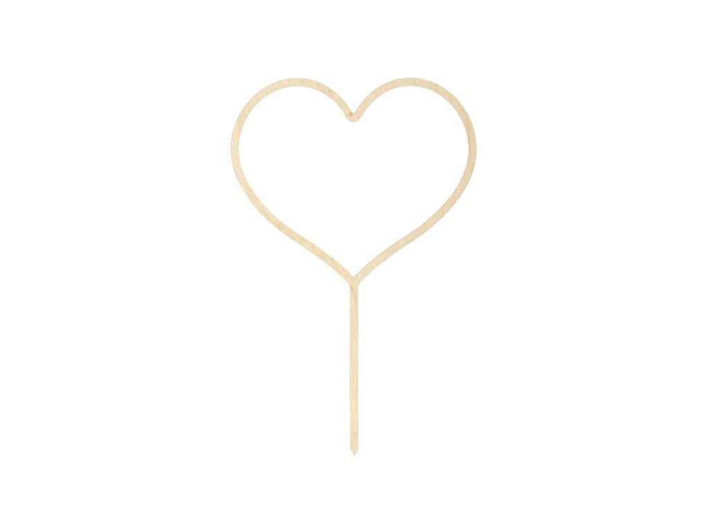 Ozdoba, topper na tort drewniana na patyczku - serce