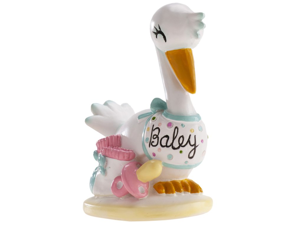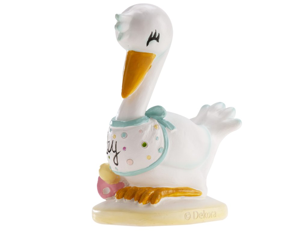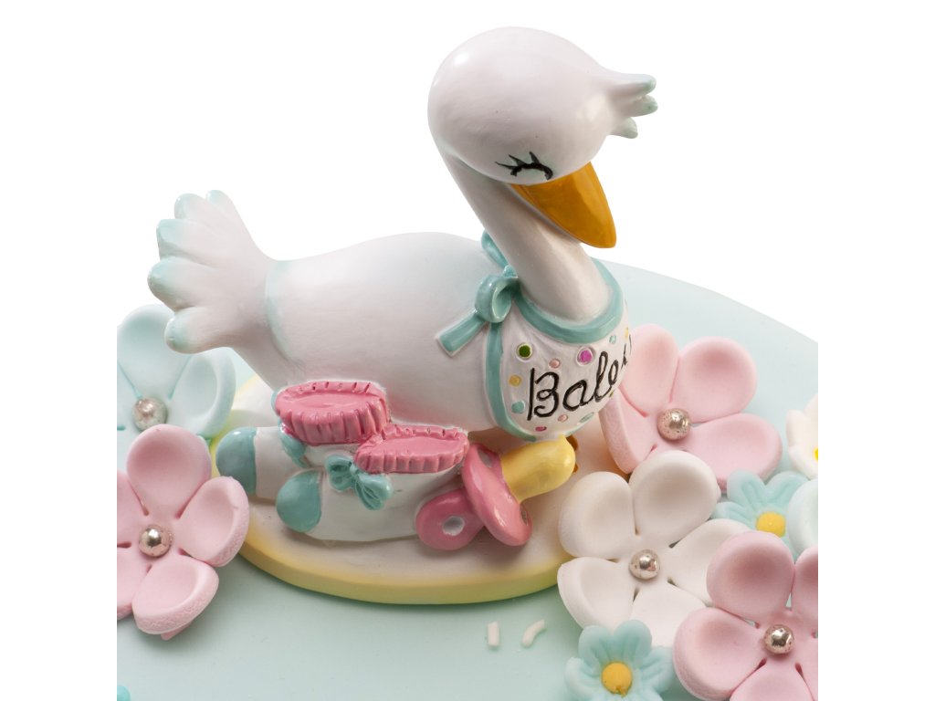 Figurka bociana jest odpowiednia na tort z okazji chrztu lub narodzin dziecka.