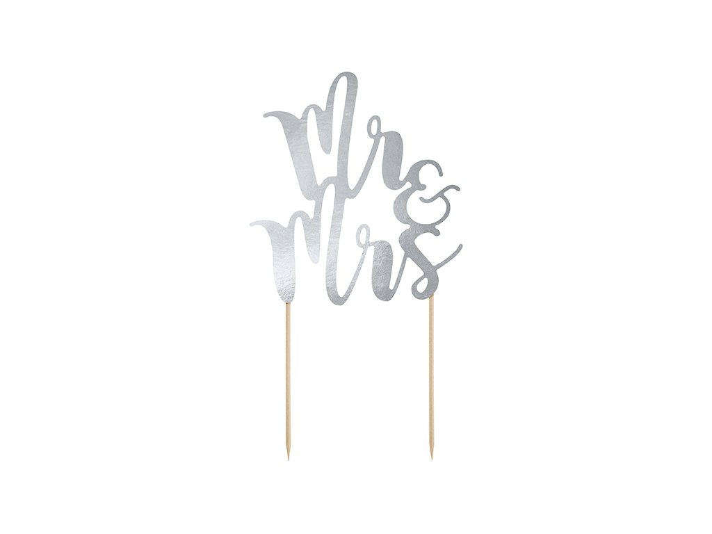 Ozdoba na tort Mr & Mrs srebrna