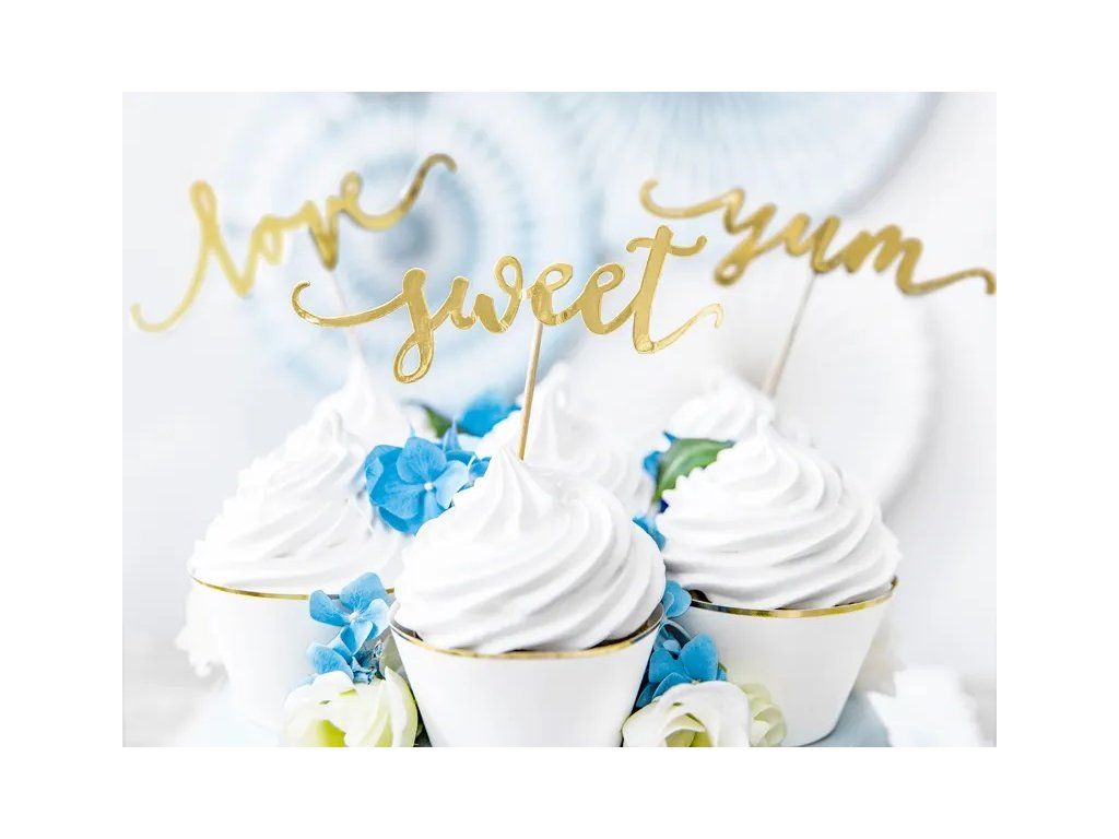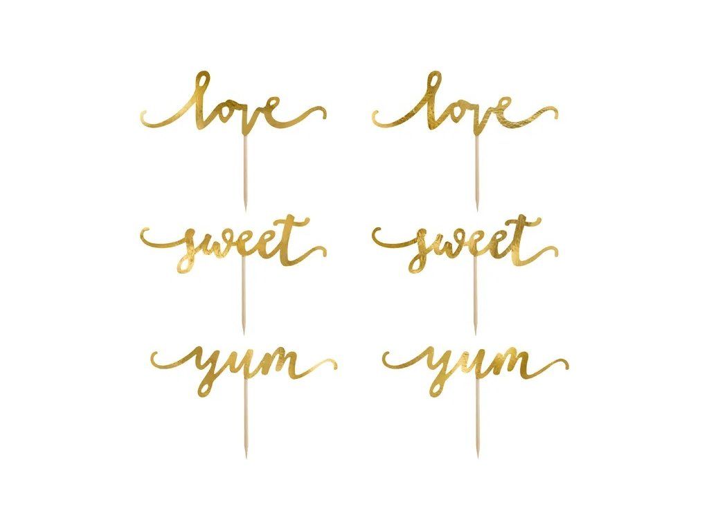 Ozdoby na cupcakes - Zlaté nápisy 6 ks