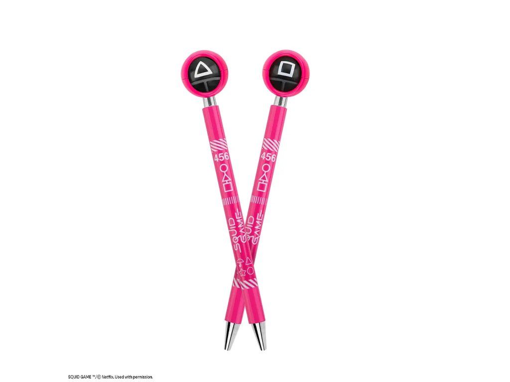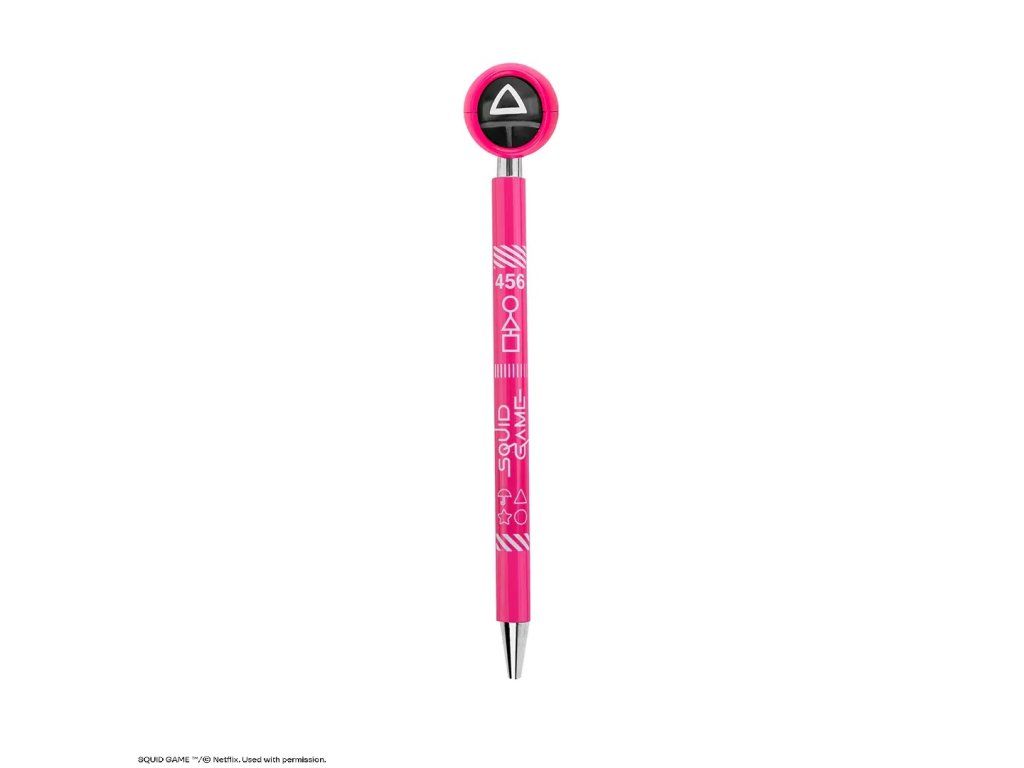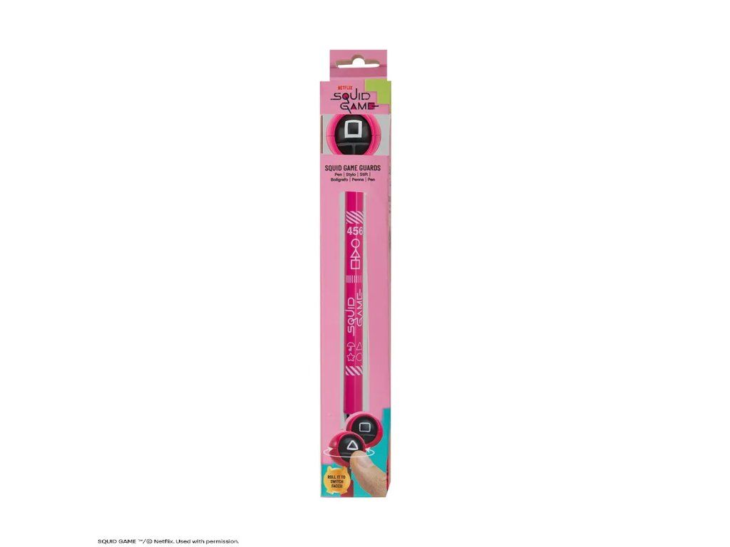 Píšte štýlovo s perom inšpirovaným svetovým fenoménom Squid Game! Tento originálny kúsok zaujme každého fanúšika napínavého seriálu. Na vrchu pera sa nachádza otáčací symbol v štýle známych herných ikon (kruh, trojuholník, štvorec), ktorý dodáva štýlu a zábave nový rozmer. Perfektné do školy, do kancelárie alebo ako zberateľský doplnok.