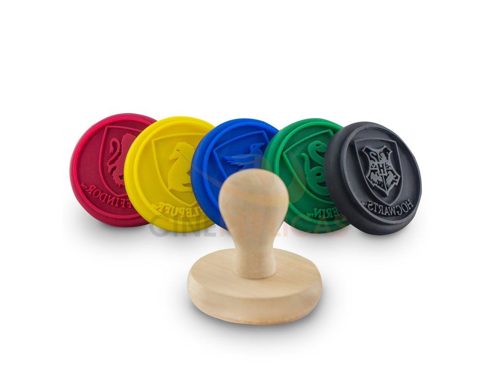zestaw obejmuje: 4 pieczątki: Gryffindor, Ravenclaw, Slytherin i Hufflepuff, 1 pieczątkę Hogwartu