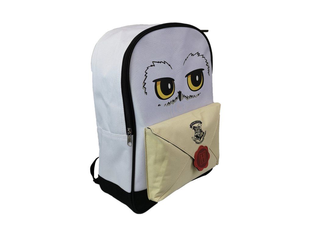 Plecak Harry Potter z motywem Jadwigi to idealny prezent dla każdego fana Harrego Pottera. Z nadrukiem Hedviga na przodzie i oryginalną torebką na drobiazgi w kształcie liścia. Zapakuj do niego wszystkie niezbędne rzeczy i wyrusz na codzienną magiczną przygodę